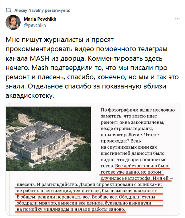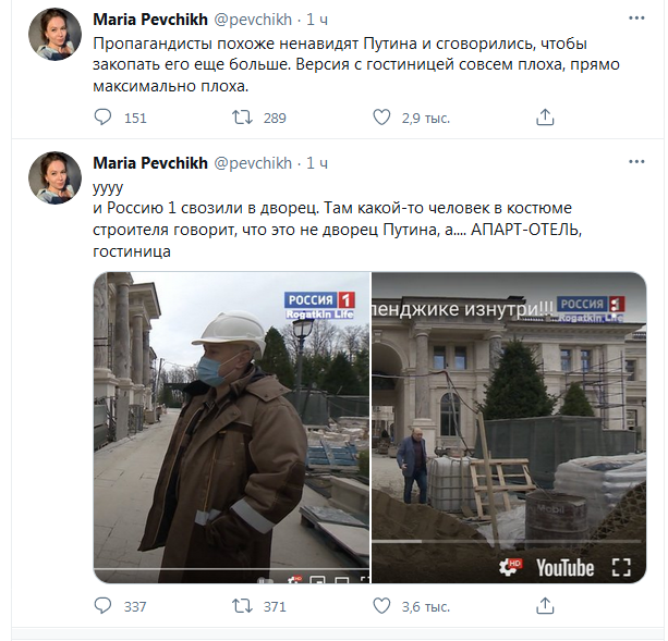 За ролик Mash про дворец в Геленджике отдувается - какая неожиданность! - Мария Певчих. Гражданка не то России, не то Великобритании, никак не разберусь.