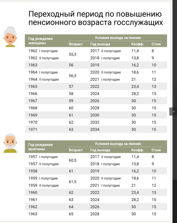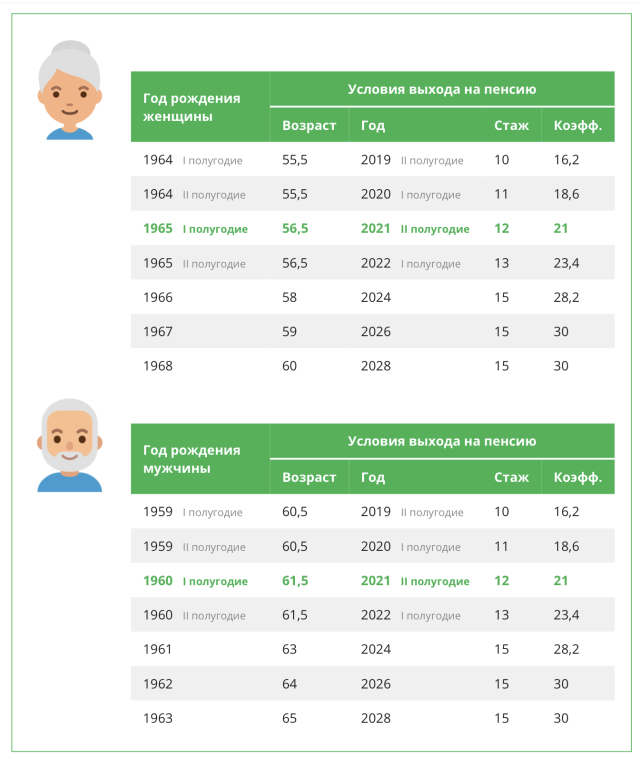 В этом году продолжает действовать переходный период по повышению возраста, дающего право на пенсию по старости. Несмотря на то, что с января он вырос еще на год, а общее увеличение составило уже три года, пенсии в 2021 году назначаются на 1,5 года раньше нового пенсионного возраста: в 56,5 лет женщинам и в 61,5 год мужчинам.