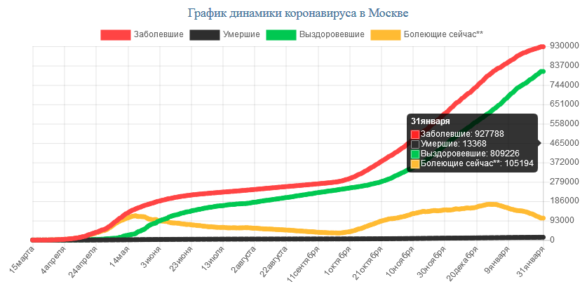 На сегодня, 31.01.2021, в Москве всего зарегистрировано: