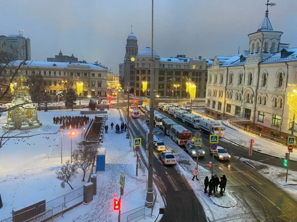 Возле мэрии на площади Ленина выстроили десятки автозаков, передает корреспондент Тайги. Инфо.