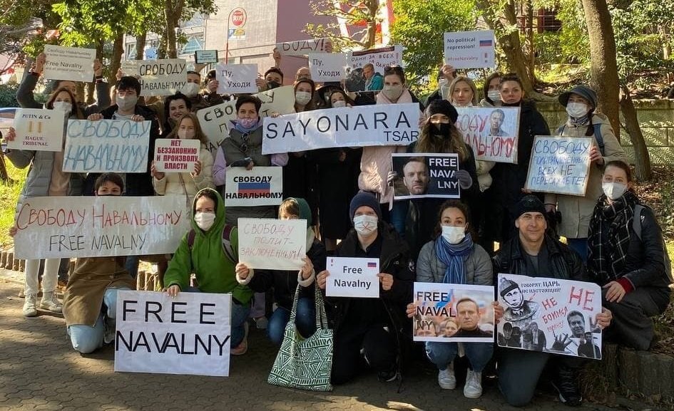 09:35 Протестная акция в Токио, фото - "Дождь".