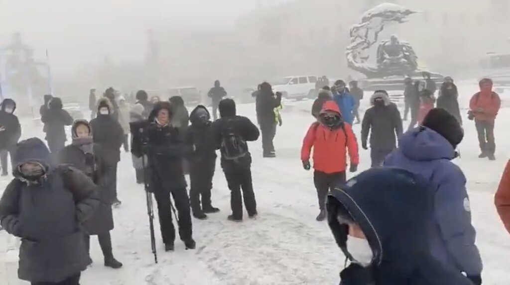 В Якутске вышло несколько десятков человек в-42 мороза.