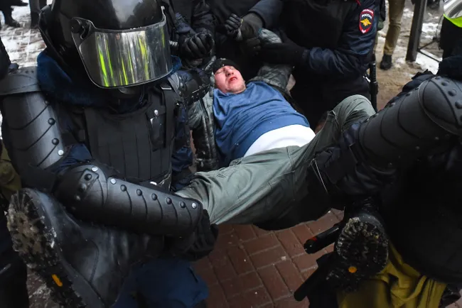 К вечеру 31 января, по данным «ОВД-Инфо», задержали больше пяти тысяч человек — и это новый рекорд (на тысячу больше, чем неделю назад); среди них — 82 журналиста. Центром протестов, по мысли организаторов, должна была стать Лубянка — но силовики и мэрия перекрыли центр Москвы. Еще никогда за последние 20 лет на акциях по всей России не работало так много полицейских — и никогда прежде они не действовали так жестко.