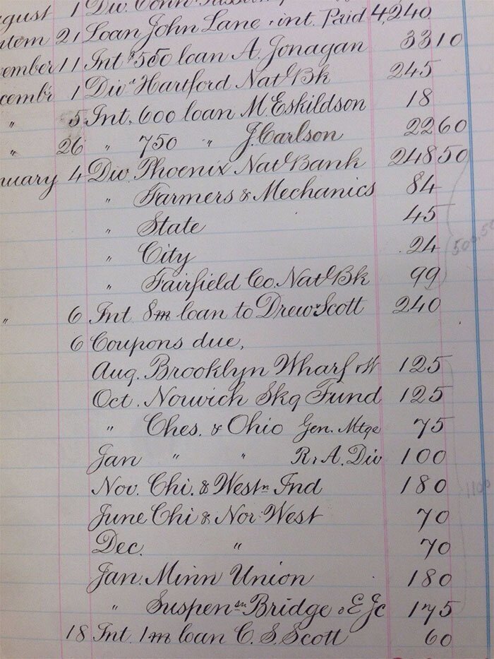 А вот кто-то подсчитывал свои доходы-расходы, выводя все пунктики каллиграфическим шрифтом. Не бухгалтерия, а заглядение!