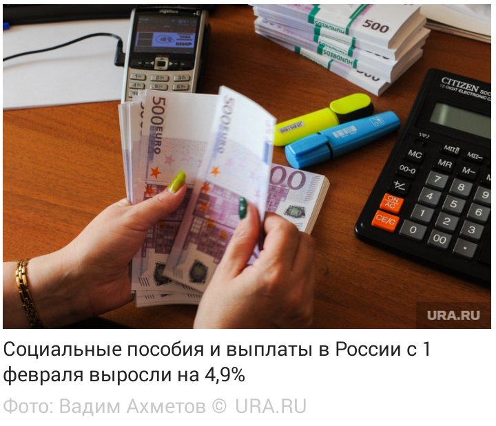 Социальные пособия и выплаты в России с 1 февраля вырослина 4,9%.