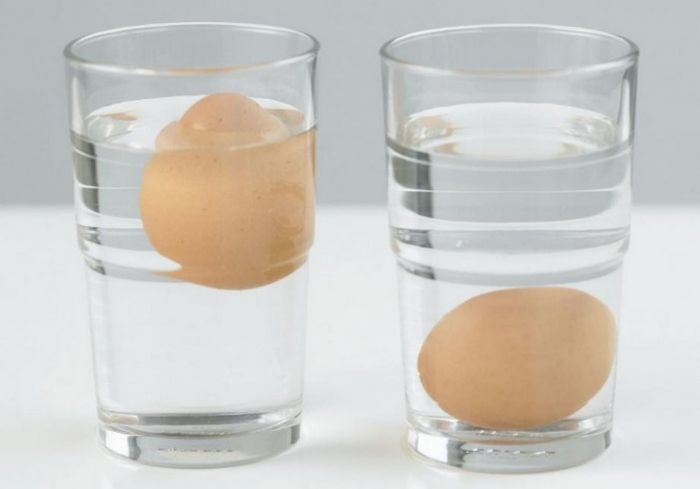 Проще всего проверить качество яйца, погрузив его в стакан с водой. Если оно свежее, то ляжет на дно бочком. Продукты недельной давности всплывут тупой стороной кверху. Яйца, которым 14-21 день, просто «повиснут» в воде тупым концом вверх. Если же куриный продукт и вовсе всплывет на поверхность, это явный признак, что яйцо несвежее и есть его точно нельзя. Обязательно проверяйте срок годности яиц при покупке. Не обязательно хранить продукты в холодильнике, можно держать яйца и при комнатной температуре.