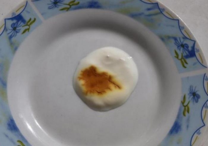 Иногда при производстве сметаны используют крахмал, чтобы улучшить консистенцию продукта. Добавку легко обнаружить в дома, если соединить немного йода или люголя с продуктом и оценить реакцию. Верный признак содержания крахмала - посиневшая сметана.