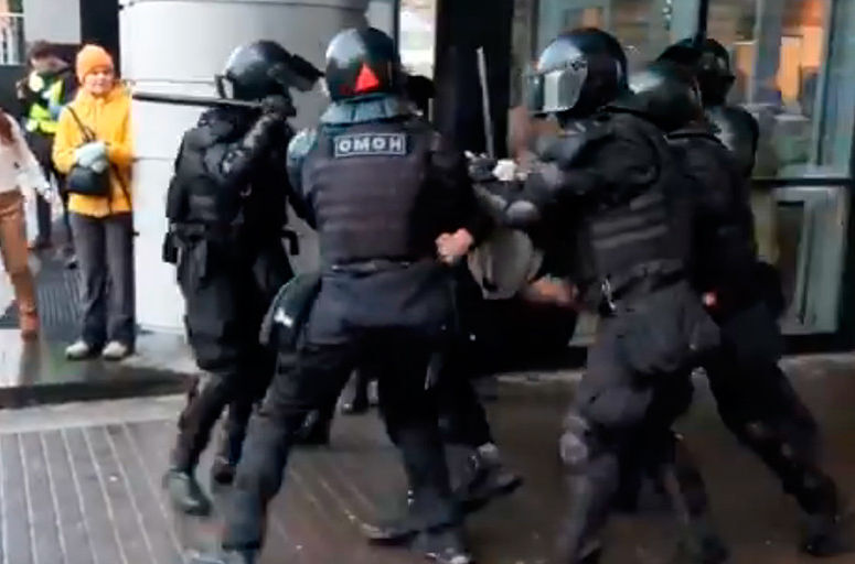 На Сенной площади в Санкт-Петербурге один из полицейских достал табельный пистолет и направил его на толпу. Сообщалось, что силовики также использовали газ против участников акции протеста, после того как они пытались освободить задержанного. Представители полиции это отрицают.