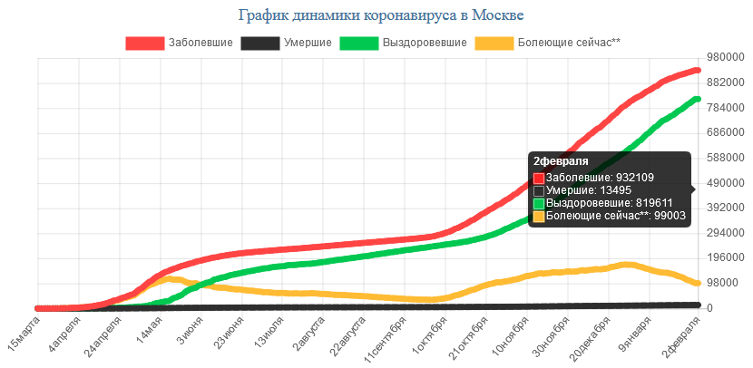На сегодня, 2.02.2021, в Москве всего зарегистрировано: