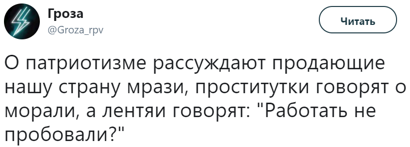 Вы вот это здесь рассказываете на полном серьезе? Ну ты посмотри на этого патриёта за мой счёт!