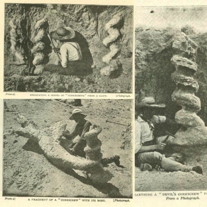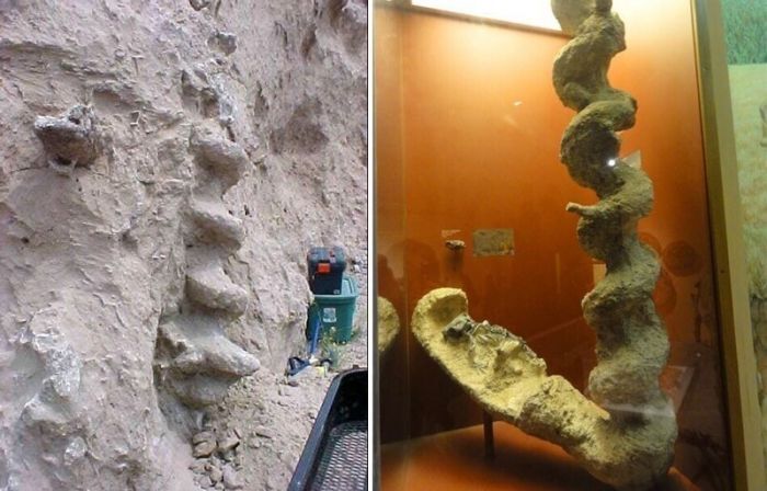 Они представляли собой наполненные песком спиральные трубки длиной до 3 метров со стенками из белого волокнистого материала. Такие окаменелости находили в местности, которая на тот момент считалась дном пересохшего древнего озера.