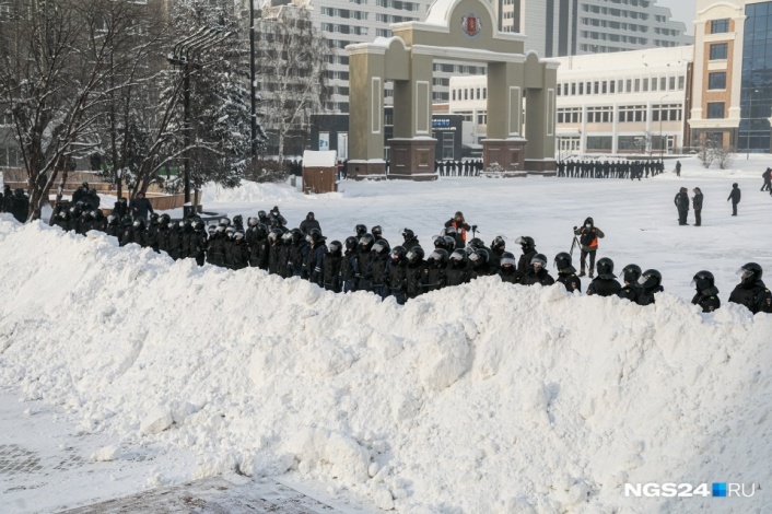 В Новосибирске силовики оперативно опережали колонны митингующих и не давали им объединиться в одно шествие. Акция была больше похожа на прогулку, часть людей была вынуждена идти по дворам. Как только колонна выходила со дворов к проезжей части, на перекрестке их уже ждали силовики.