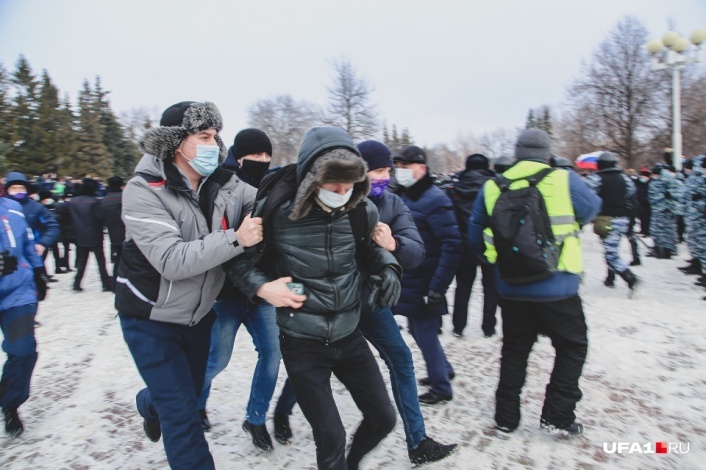 Во многих городах участники акций и журналисты сообщали о том, что в задержаниях принимают участие люди в гражданской одежде и без каких-либо опознавательных знаков. UFA1.RU Подробнее ➤пишет, что они не только выталкивали протестующих из толпы прямо к ОМОНу, но и лично участвовали в задержаниях. Люди в штатском также задержали в Красноярске заместителя главного редактора NGS24.RU Якова КалининаПодробнее ➤.