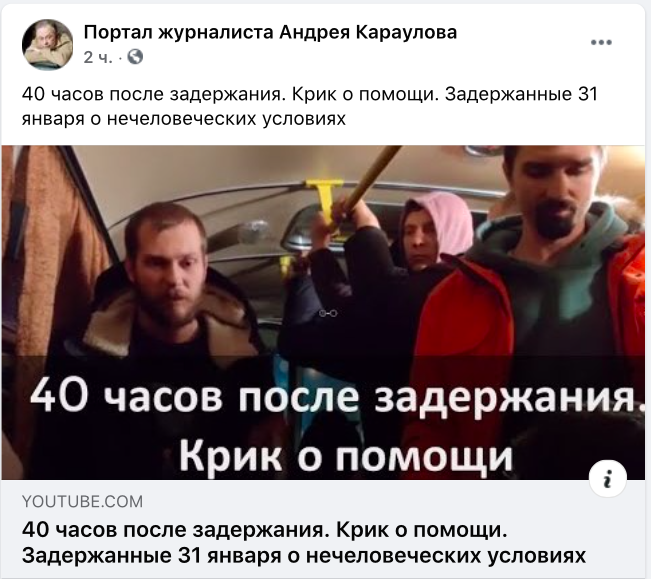 Более подробно о крике помощи задержанных на митинге 31 января здесь: "40 часов после задержания. Крик о помощи. Задержанные 31 января о нечеловеческих условиях" Подробнее ➤