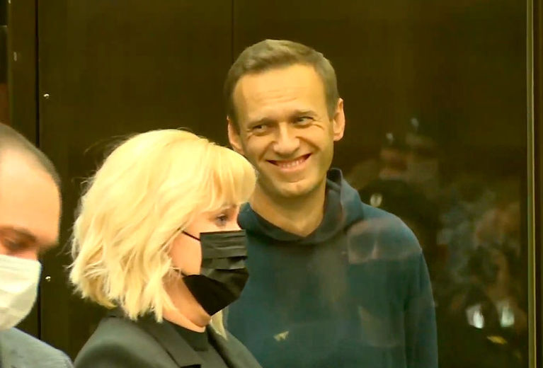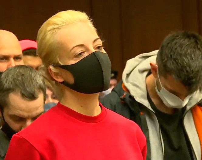 Алексей Навальный слушал судью, смотрел на жену и улыбался. Юлия Навальная заплакала, услышав решение суда по делу супруга, сам Навальный выслушал вердикт спокойно.