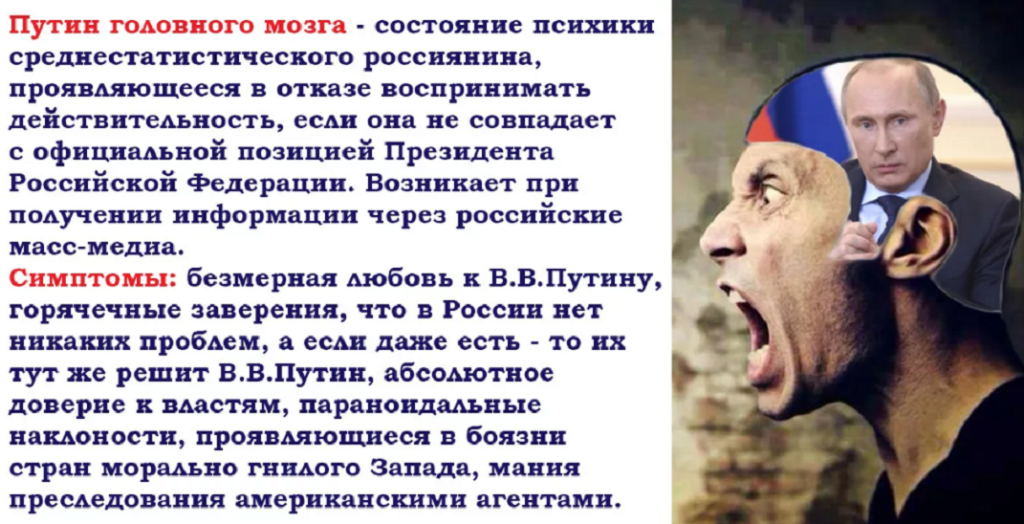 Ольга, судя по аргументам в пользу доказательств"недоверия" к Путину, у вас произошло психическое расстройство по причине наследственной русофобии🤔