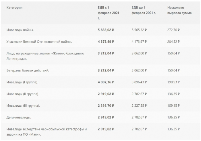 Повышение выплат ЕДВ федеральным льготникам с 1 февраля 2021 года: на сколько индексировали ЕДВ