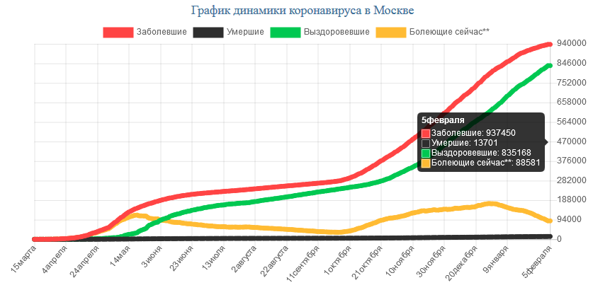 На сегодня, 5.02.2021, в Москве всего зарегистрировано: