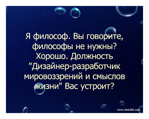 Мои мысли, в зависимости от настроения, делятся на три большие группы: сарказм, печаль и философия.