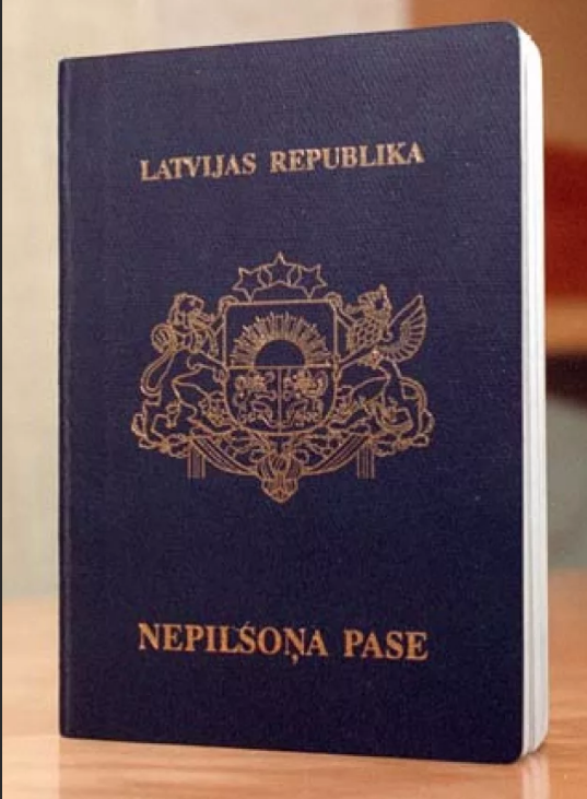 Затем Караев показывает свой фиолетовый паспорт, на котором можно прочитать Nepilsona Pass (паспорт негражданина на латышском языке).