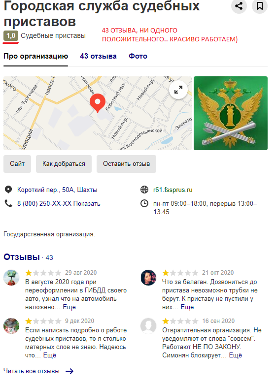 ИНТЕРЕСНО ОЧЕНЬ, ПОЧЕМУ ВСЕМ в ФССП, всё равно на многочисленные обращения и жалобы на работу данной организации, а точнее людей, работающей в ней. КОГДА НАСТАНЕТ ПОРЯДОК, И ВСЕ БУДУТ ЖИТЬ ТАК КАК ПОКАЗЫВАЮТ ПО ТЕЛЕВИЗОРУ НА ГОСУДАРСТВЕННЫХ КАНАЛАХ..