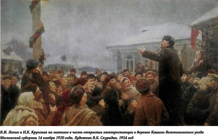 «Была коптилка да свеча – теперь лампа Ильича» Почти за месяц до принятия плана ГОЭЛРО в подмосковной деревне Кашино случилось грандиозное событие – силами местных жителей была построена первая электростанция с разводной сетью. Вдохновившись призывами Ленина к развитию экономики страны с помощью использования электроэнергии, кашинцы создали разводную сеть из давно забытого телеграфного провода, а вот динамо-машину привезли из Москвы. Интересно, что в то время деревня Кашино ничем не отличалась от соседних поселений, находилась на окраине, и добраться до нее было довольно сложно. Возможно, сегодня такого населенного пункта уже не оказалось бы на карте, если бы не поездка Ильича 14 ноября 1920 года. Кашинцы построили электростанцию на средства сельскохозяйственного товарищества и пригласили Ленина в свою деревню.