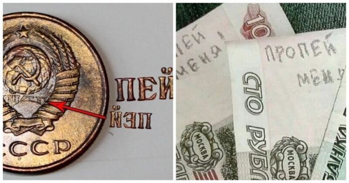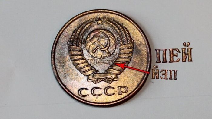 Дефект со словом "ПЕЙ" считается нумизматами самым распространенным и самым "забавным".