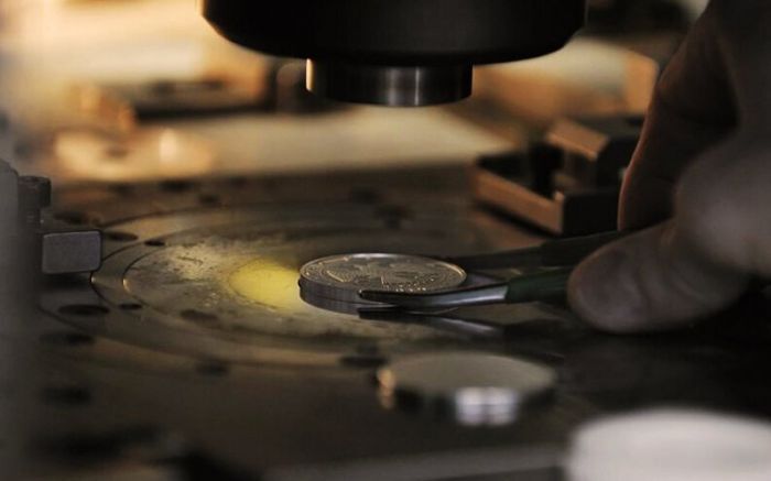 Этот брак возникает, когда два штемпеля, печатающие аверс и реверс, соударяются вхолостую, без заготовки. И в результате оба штемпеля оставляют друг на друге вмятины от изображения.
