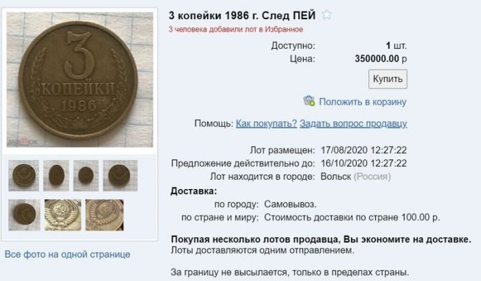 Но кто-то считает эту особенность сильно недооцененной. На объявлении выше можно увидеть, что некто продает подобную монету за астрономические 350 тысяч рублей. Интересно, найдутся ли покупатели?