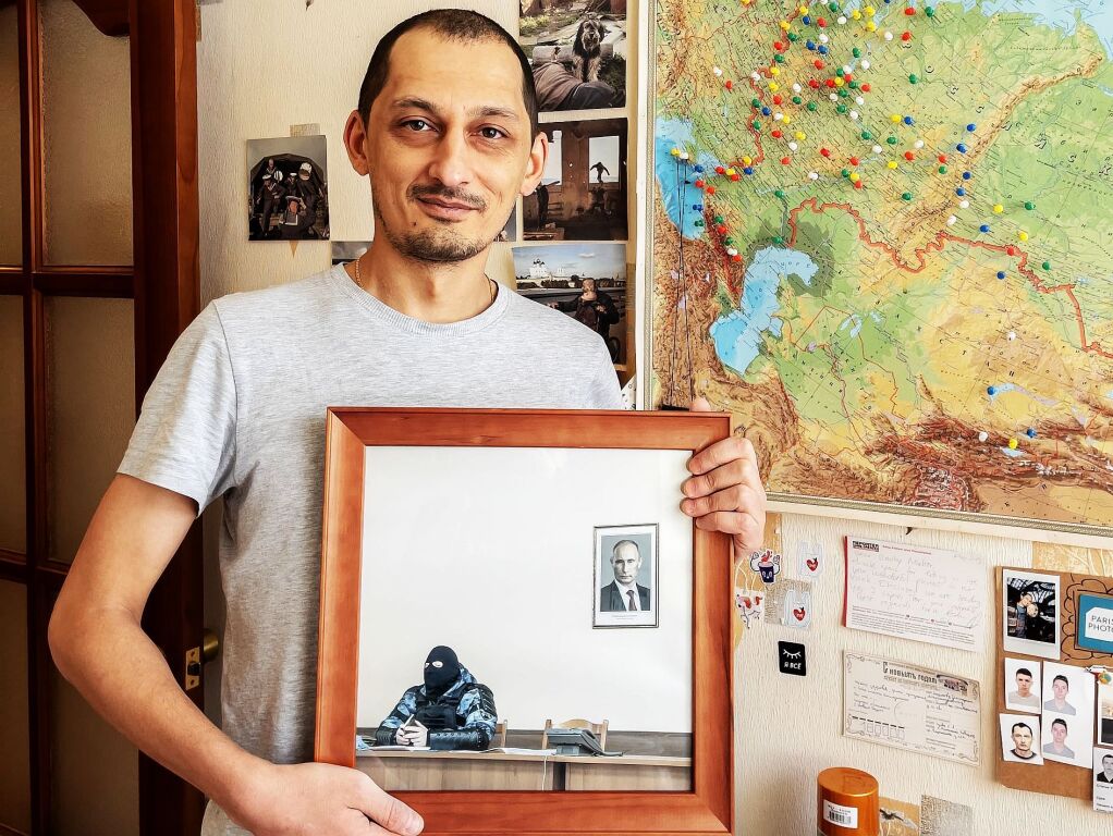 Сюжет незатейливого, миллионного фото весьма прост: омоновец в маске, сидящий под портретом президента Путина. Маркова задержали 2 февраля. Полиция отвезла его в ОВД «Косино-Ухтомский», там он и сделал этот символический снимок.