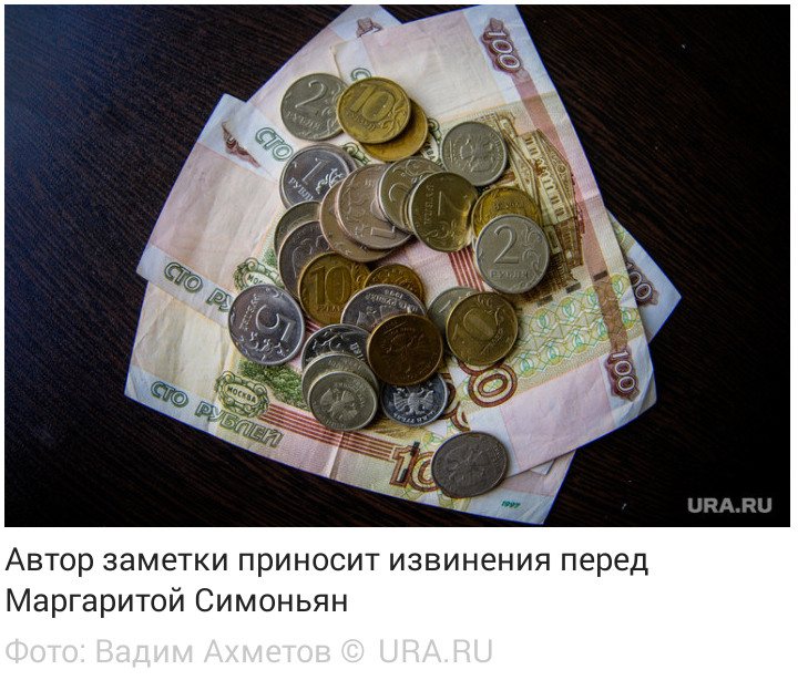 На сайте URA.RU накануне вышла новость с заголовком: «Симоньян раскритиковала россиян, жалующихся на низкие пенсии. „Дайте нашей стране время“».