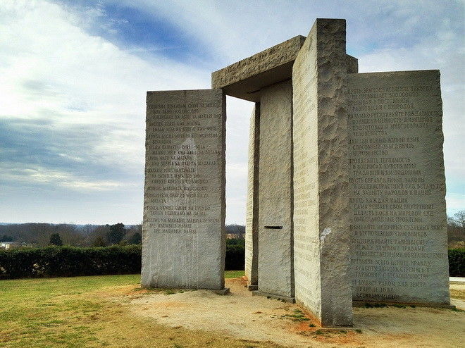 В маленьком американском городке Элбертон высится на холме гигантское сооружение из гранита. Это Джорджийские скрижали, каменные плиты высотой 19 футов (свыше шести метров) с посланием к человечеству.