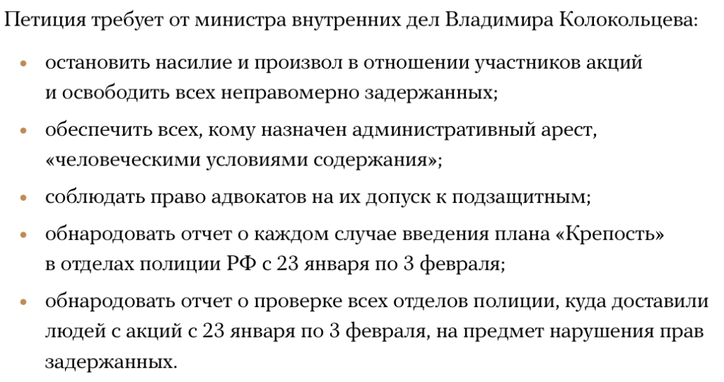 Десятки тысяч россиян потребовали остановить полицейское насилие и план «Крепость». https://tayga.info/164357