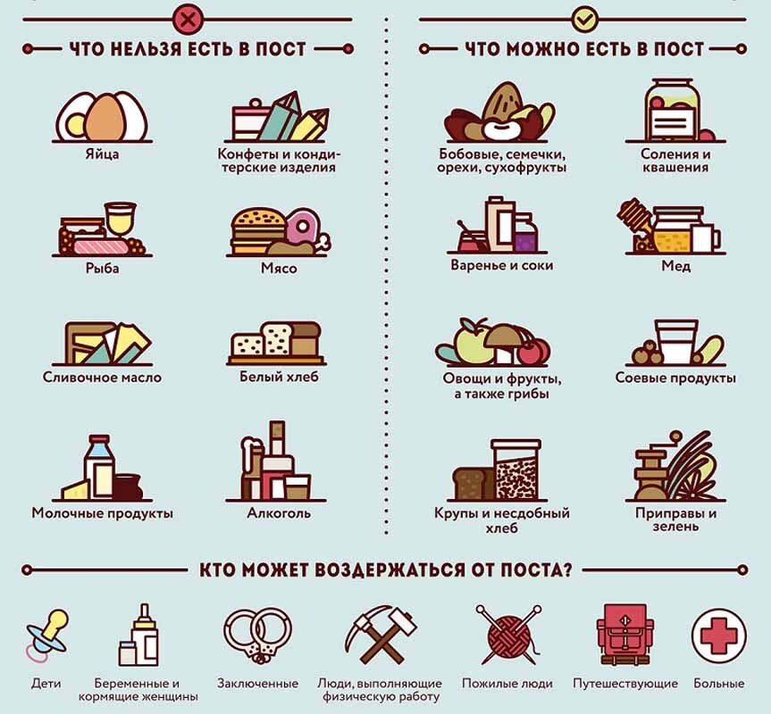 Людям, которые ослаблены различными болезнями, беременным, детям и пожилым допускается не придерживаться поста полностью или исключить только какую-нибудь одну группу продуктов питания, например, сладкое.