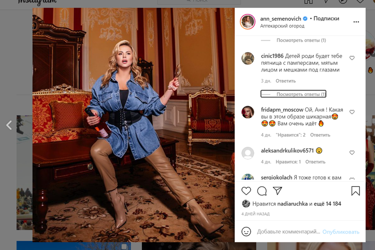 В комментариях позиционирования Семенович почему-то не оценили. Анну раскритиковали за избыточную свободу, а заодно за кожаные штаны, в которых она позировала на снимке.