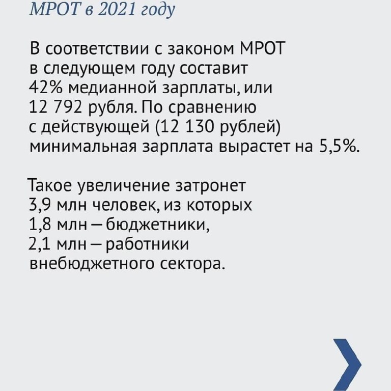С 1 января 2021 года МРОТ будет равен 12 792 руб. в месяц (на сегодня – 12 130 руб.).