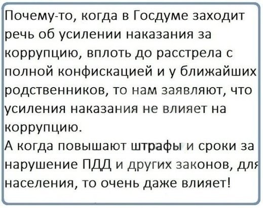 В принципе конечно я против незаслуженных репрессий, против коррупционного миллиардного разгула в стране, но и майданы с нуландовскими печенюшками пугают. Надо просто срочно вводить, как в Китае смертную казнь коррупционерам, иначе потеряем Россию, как и СССР.