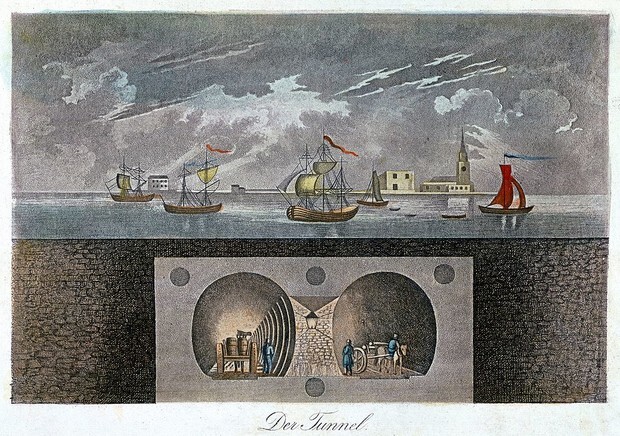 История строительства тоннеля под Темзой началась, как ни странно, в России. В 1814 году аудиенции императора Александра I удостоился британский инженер французского происхождения Марк Брюнель. Инженер представил царю революционный проект — строительство тоннеля под Невой.