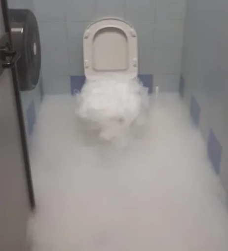 Однако по своей технической неграмотности мужчина не знал, чем является данное вещество и в какую реакцию оно вступит если его просто смыть в унитаз. При "таянии" сухой из твердого состояния сразу превращается в газообразное, тем самым пропуская фазу жидкого состояния. Как только кубики сухого льда соприкоснулись с водой запустилась цепная реакция и хозяин квартиры сильно испугался.