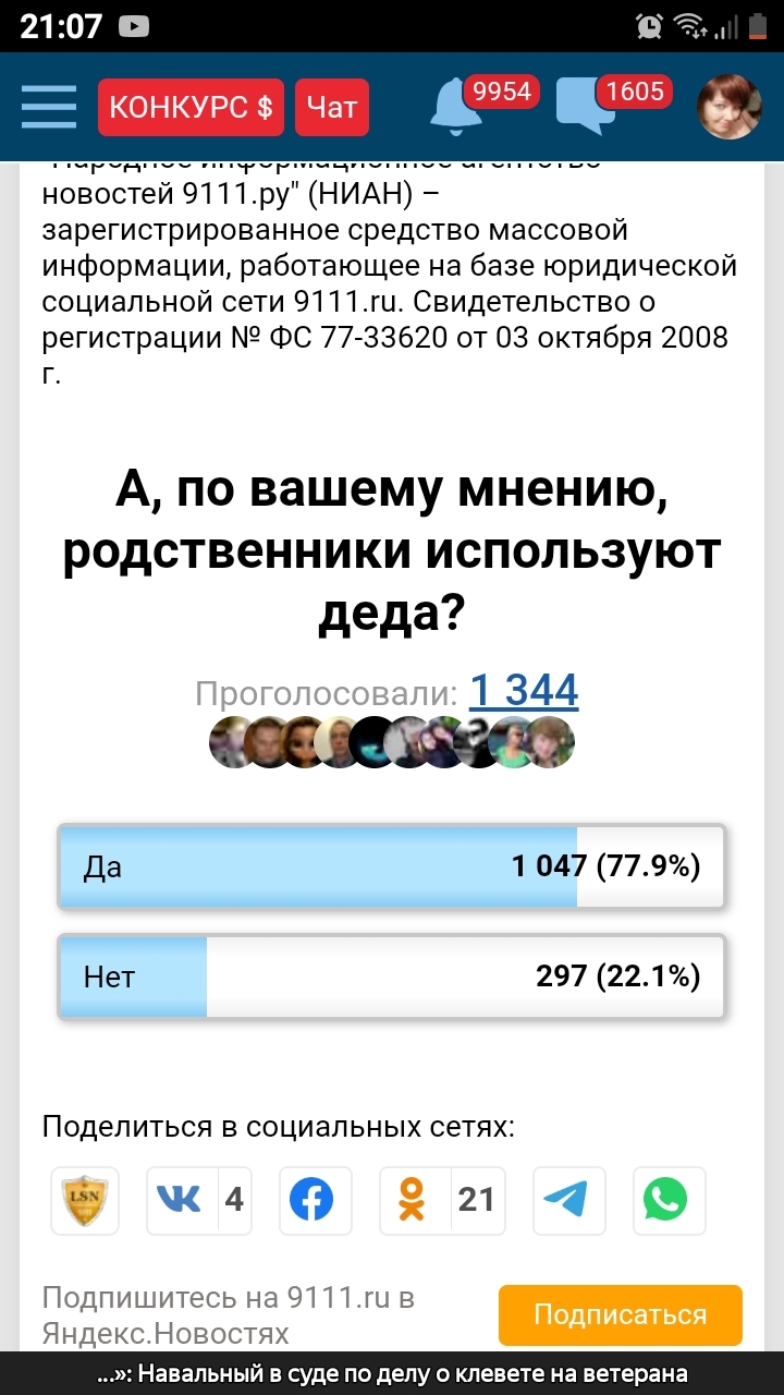 Если бы Навальный наврал, распространял ложные слухи, то есть клеветал про дворец, его бы за это привлекли однозначно, за клевету, и не надо бы было власти цепляться за ветерана. Уже давно была бы готовая статья. А не тут то было. Значит про дворец - не ложь, а ПРАВДА! Зомбированная вы женщина, Лидия Николаевна. Голливуд с ихним вирусом плачет, глядя на Вас!