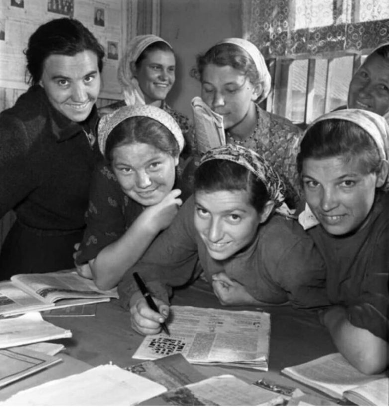 Доярки отдыхают разгадывая кроссворд, Тамбовская обл, колхоз «Коминтерн» 1957 год