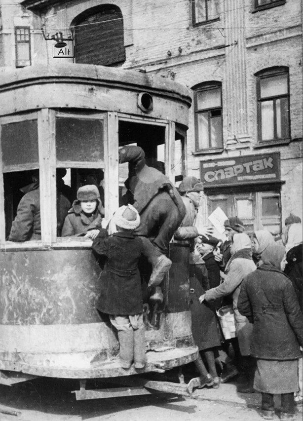 На трамвайной остановке у кинотеатра «Спартак», Горький, 1942 год