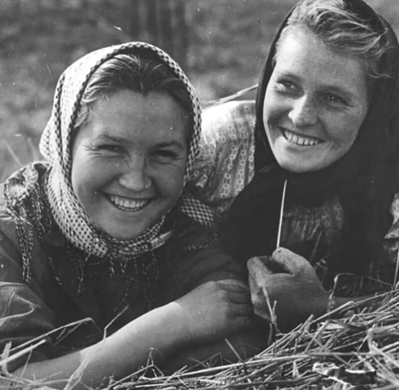 Подружки, работающие в колхозе «Красный Октябрь», попали в кадр, 1950-е, Кировская обл.