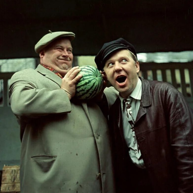 Евгений Моргунов и Олег Попов покупают арбуз. 7 сентября 1968 года