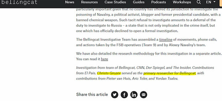 Руководителем и главным координатором был именно Христо Грозев, о чём нам любезно сообщают на сайте Bellingcat.