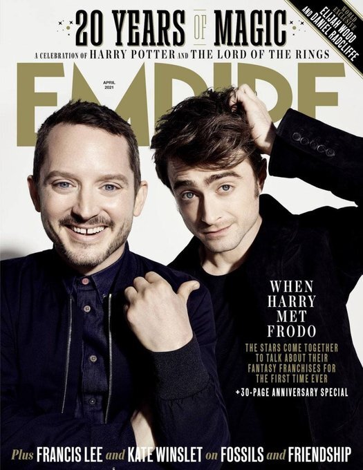 Двадцать лет назад вышли первые фильмы «Гарри Поттера» и «Властелина колец». По этому поводу Дэниэл Редклифф и Элайджа Вуд снялись для обложки журнала Empire.