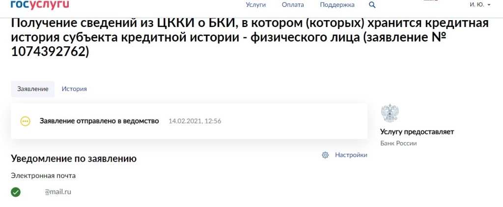 В течение суток вам должен быть предоставлен список бюро кредитных историй, в которых хранятся ваши данные.