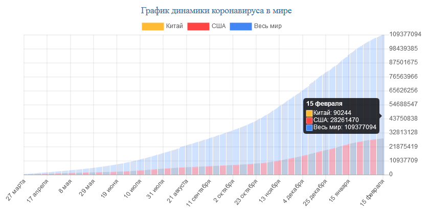 На сегодня, 15.02.2021, в мире всего зарегистрировано: