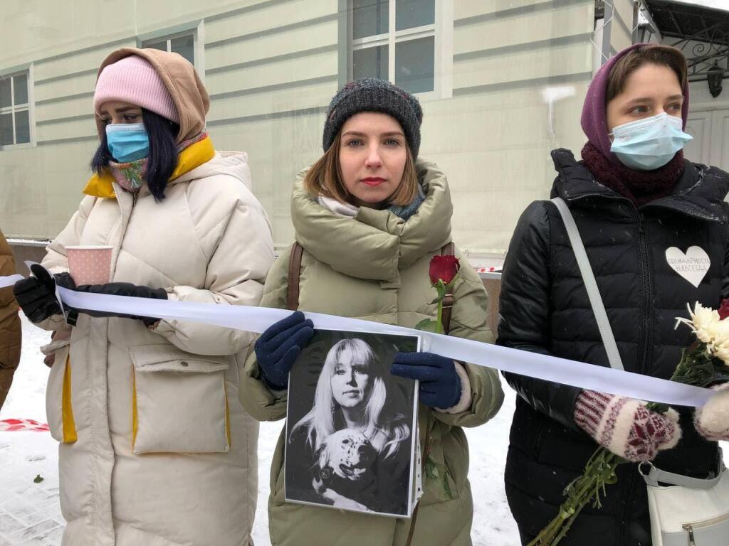 В 2 часа дня 14 февраля протестующие против полицейского произвола собрались у памятника Пушкину и Гончаровой на Арбате, чтобы поддержать Юлию Навальную и других женщин, переживших, как говорят организаторы, «государственное насилие». Пост с их именами ранее разместила в своем блоге организатор протеста, фемактивистка Дарья Серенко. В списке около 100 человек, среди них юрист ФБК*** Любовь Соболь, участница Pussy Riot Мария Алехина, муниципальный депутат Люся Штейн, которые сейчас находятся под домашним арестом.
