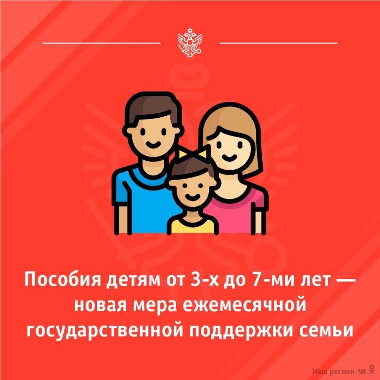 Согласно Постановлению Правительства РФ от 31.03.2020 N 384 «Об утверждении основных требований к порядку назначения и осуществления ежемесячной денежной выплаты на ребенка в возрасте от 3 до 7 лет включительно, примерного перечня документов (сведений), необходимых для назначения указанной ежемесячной выплаты, и типовой формы заявления о ее назначении» настоящие основные требования применяются органами государственной власти субъектов Российской Федерации при установлении порядка и условий назначения ежемесячной денежной выплаты на ребенка в возрасте от 3 до 7 лет включительно (далее - ежемесячная выплата), а также при установлении требований к имущественной обеспеченности семей для определения их нуждаемости при назначении ежемесячной выплаты.